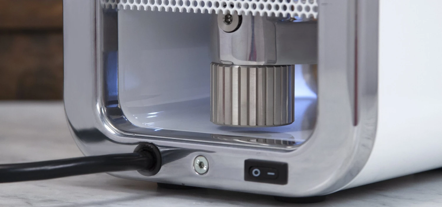 With a 65 W motor and features like adjustable tamping pressure from 22-66 lb (10-30 kg), an OLED display with touch pad and variable measure unit selection for either kg or lbs, the Cube Tamp takes tamping to the next level. Simply insert your portafilter into the tamping chamber and the Cube will automatically tamp your coffee with your designated pressure.