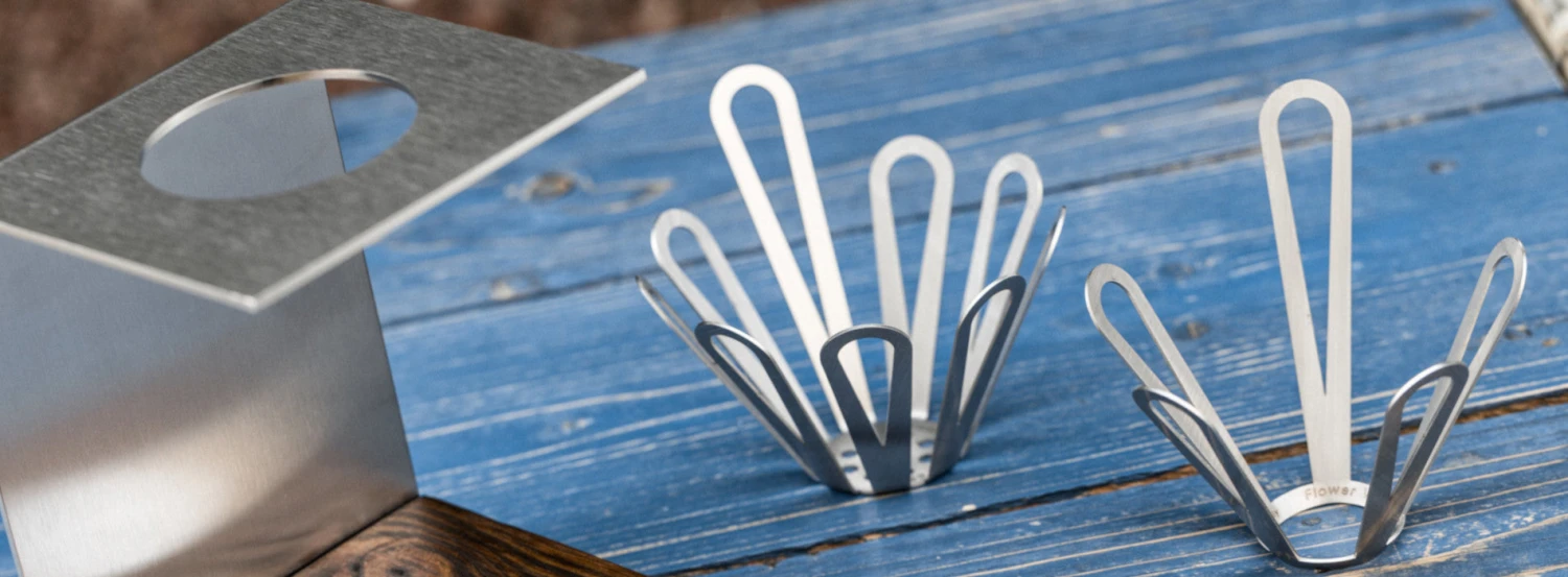 Unique and Italian-made, E&B Lab’s Flower V60/Chemex filter was designed to house Chemex and Hario paper filters. The longer petal on the filter is a deliberate feature that grips the paper filter while the shorter petals aid in supporting the paper filter throughout the brewing process. Unlike many other filter holders, the flower design helps prevent changes in the coffee’s temperature while brewing as it has less surface area to absorb heat. Alternate to your liking between V60 filters for a traditional extraction, or thick Chemex filters for an extra clean cup.