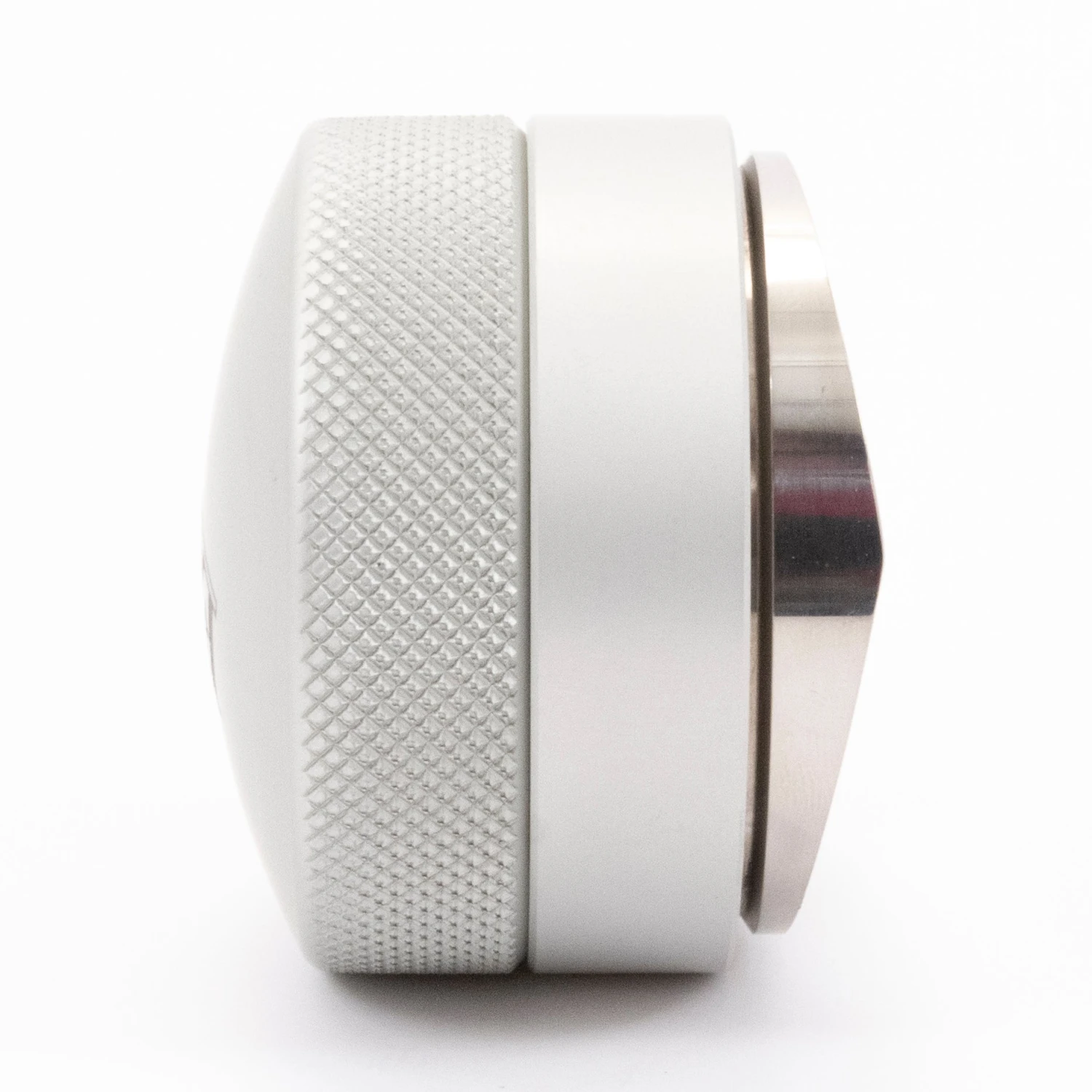By gripping the adjustment ring and turning the handle counterclockwise, you can release the wedge to raise or lower the height of the blades depending on your dose and the size basket that you’re using. The textured handle is made of aluminum while the adjustment ring and blades themselves are made out of steel.