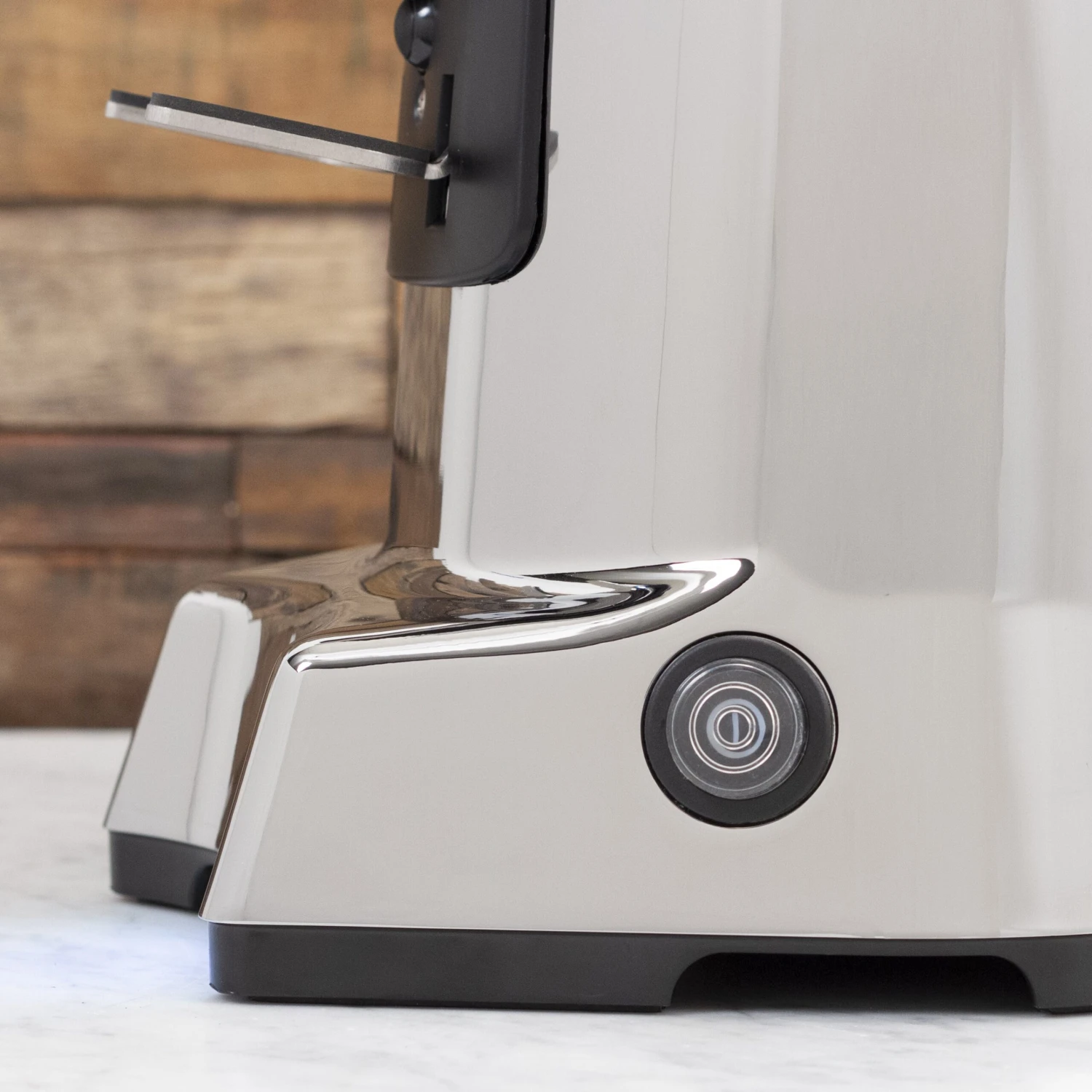 There’s no question that the Eureka Helios 65 is a professional espresso grinder. With 65mm flat burrs made of hardened steel and a strong 570 watt motor, the Helios 65 dispenses grounds at up to 5 grams per second. With the stepless micrometric adjustment knob, not only does the Helios 65 have near-infinite grind settings available for ultimate precision, it’s easy to adjust as well. Thanks to Eureka’s ACE System, grounds are dispensed clump free by eliminating electrostatic charge in the coffee.