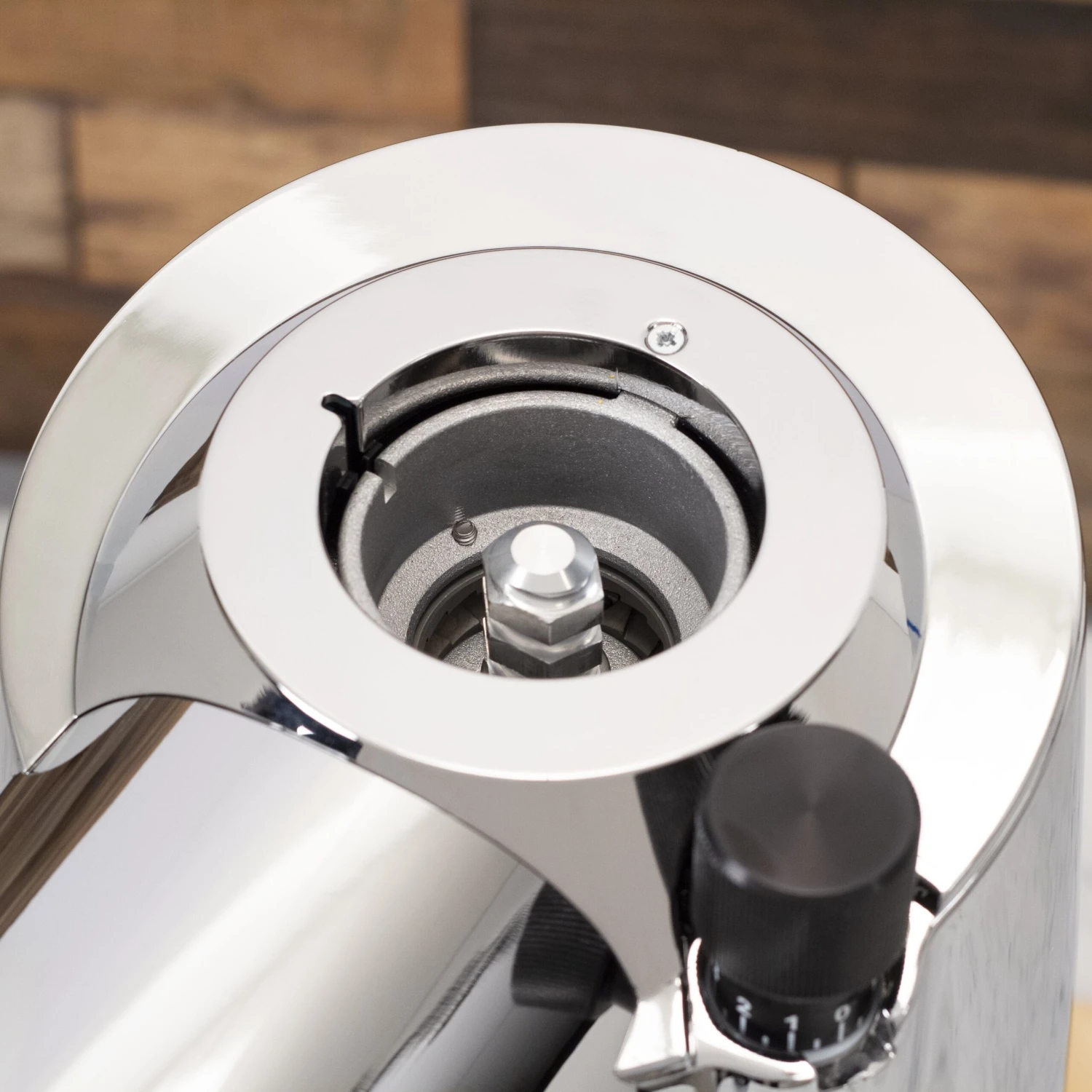 Maintenance is possibly the easiest it’s ever been on a grinder thanks to the bean hopper security system. When the hopper is removed, the system is powered down. Simply lift the lid to access the grinding chamber, which is held in place with several screws.
