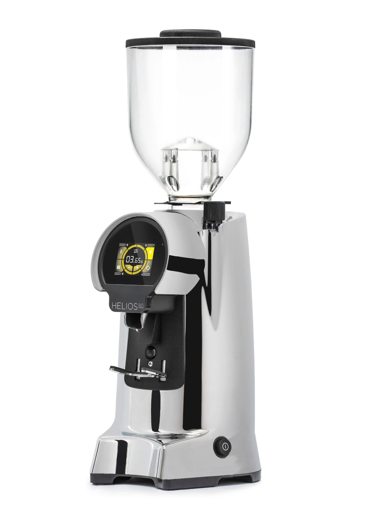 The dosing timer on the Helios 80 is highly programmable with three customizable settings that allow you to get the right dose timing with just one touch. The touchscreen has a range of features, including the ability to program 3 different custom doses. You can choose to start the grinding process by hitting the microswitch, using the touchscreen, or combining both by choosing to have both enabled. You can also lock the dosing amounts to make sure you don’t lose track or accidentally change anything once you find the right dose.