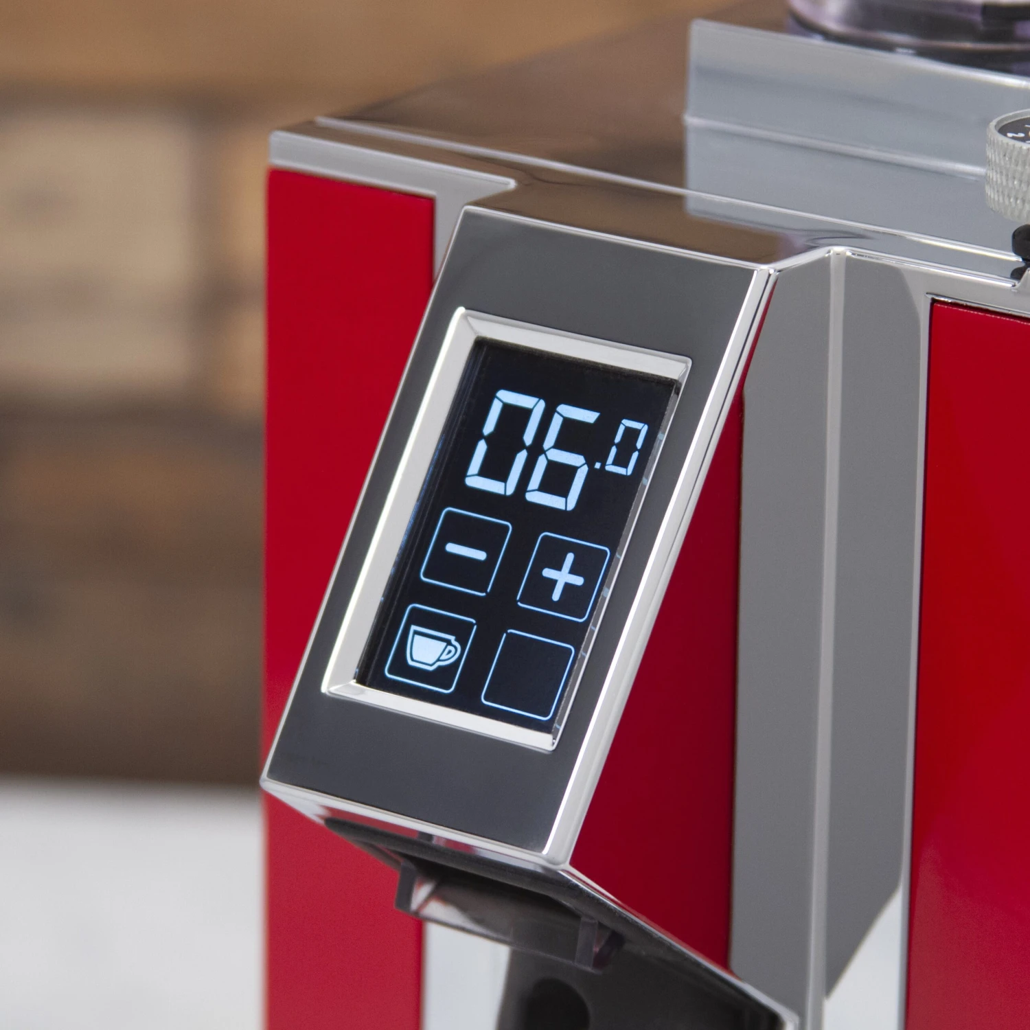 First of all—the touch screen. We’re thrilled with how intuitive it is. It’s vibrant, with a large font size and clean controls. Grind time is adjustable in tenths of a second using the “+” and “-” buttons, and you can freely switch between single and double shots. Also, you can switch to a manual mode for continuous grinding, or lock in your timed settings to keep other people from fiddling.