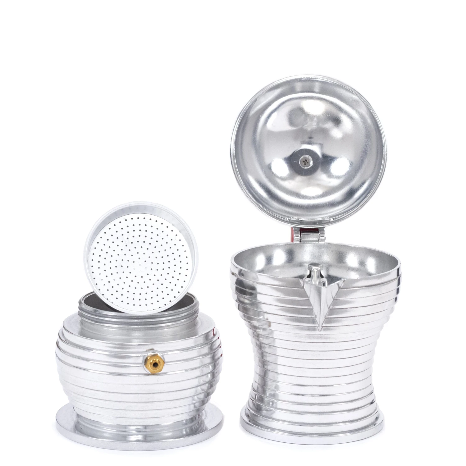 The Alessi Pulcina is a stylish aluminum moka pot that produces 3 cups (5.25 oz) of full-bodied aromatic stovetop coffee. Featuring a unique shape that achieves optimal extraction and enhances aroma, this ground-breaking moka pot successfully combines technological expertise and impeccable design.