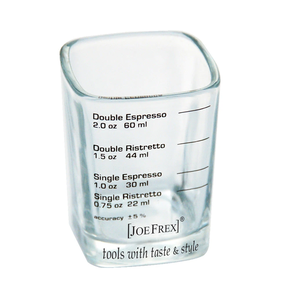 A perfect tool for barista’s looking for maximum precision, the Joe Frex Measured Shot Glass holds up to 2 oz and features measurements for single and double ristrettos and espressos.