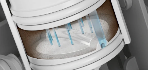 Mentioned above but worth reiterating, the JURA Z10 in Diamond White comes with a large touch display screen that is easy to navigate. It also uses a Crystal Rotary Switch on the top which lights up as a nice crisp blue when in use. Beyond all these features, you can trust the JURA to look good. The Diamond White offers an elegant look, and the convex-concave front panel brings a sense of movement to the machine. On the side you’ll find a beautifully detailed water tank which also lights up blue.