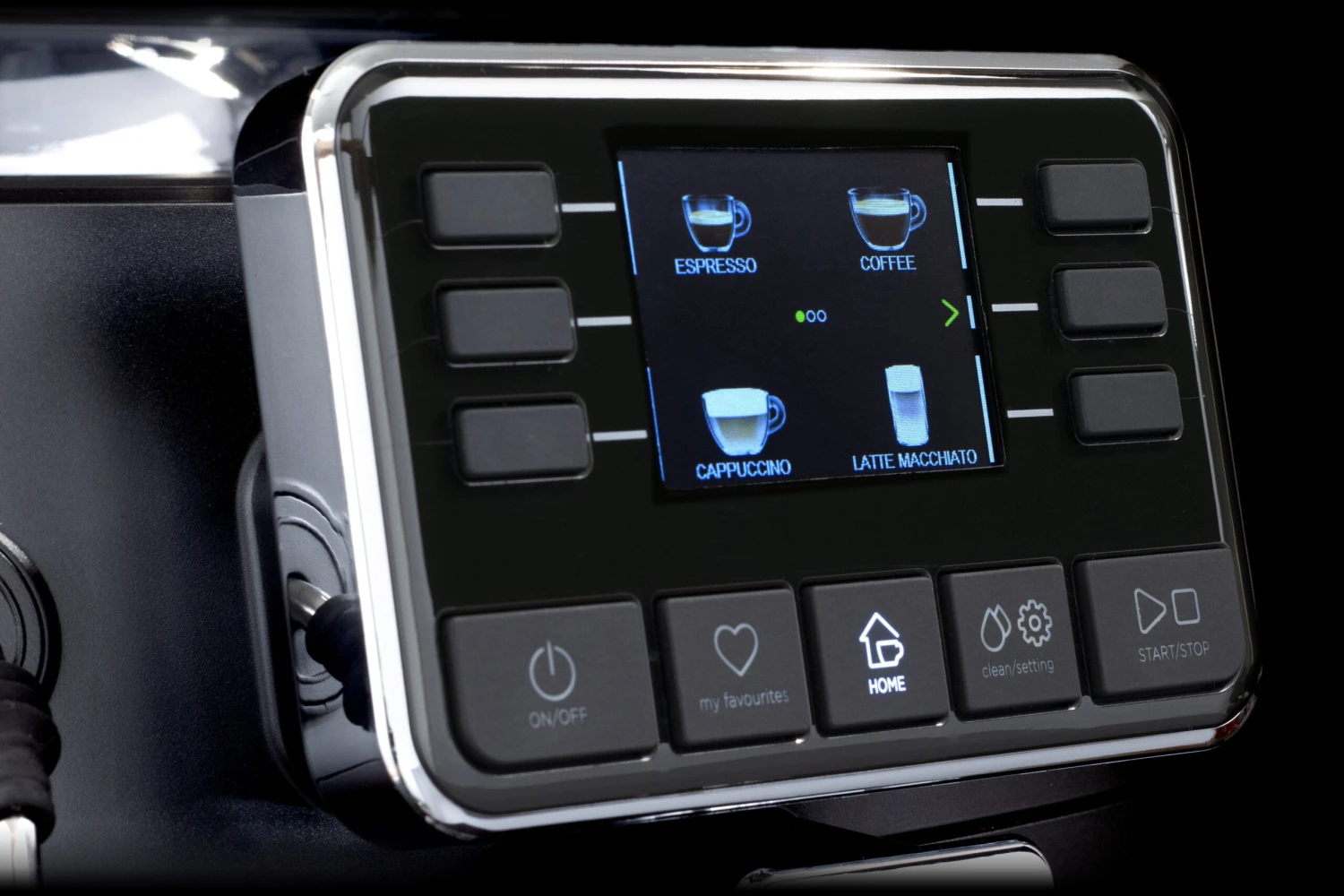 Gaggia’s Cadorna Milk is a 100% Italian manufactured super-automatic machine made for the home barista. The bean-to-cup machine sports a full color TFT screen display with backlight buttons to compliment it’s high-tech design. Users can access all of their favorite beverages, create & personalize user profiles, and access settings for increased usability.